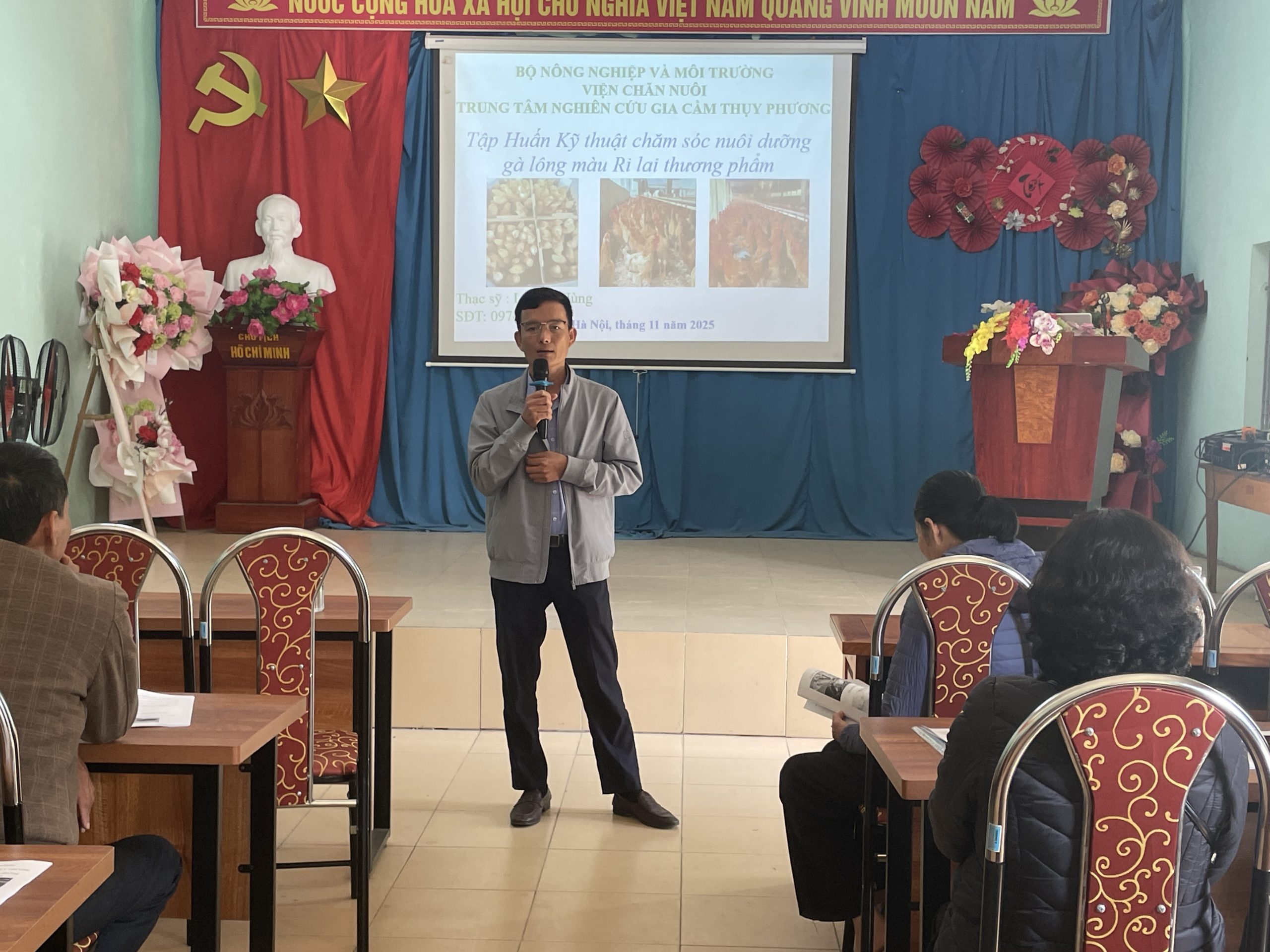 Chuyên gia Lê Văn Hùng – Trung tâm Chăn nuôi gia cầm Thụy Phương (Viện Chăn nuôi) đã hướng dẫn cách chăm sóc và nuôi dưỡng gà cho các hộ gia đình