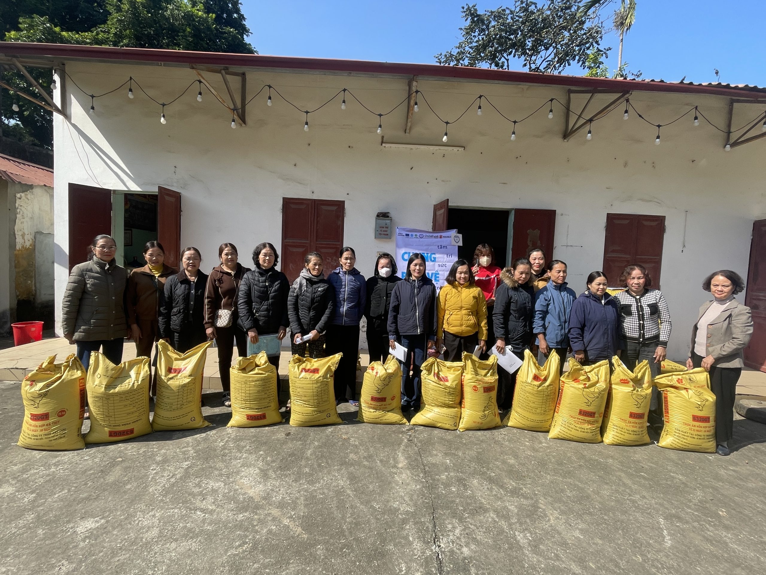 Dự án đã hỗ trợ mỗi hộ gia đình đã được nhận 90 con gà giống ri lai (21 ngày tuổi) và 6 bao thức ăn cho gà (loại 25kg/bao) để nhằm góp phần cải thiện điều kiện gia đình, hướng tới những thay đổi trong chăm sóc dinh dưỡng cho trẻ em tại gia đình cho các hộ gia đình đang có con được nhận hỗ trợ từ dự án.