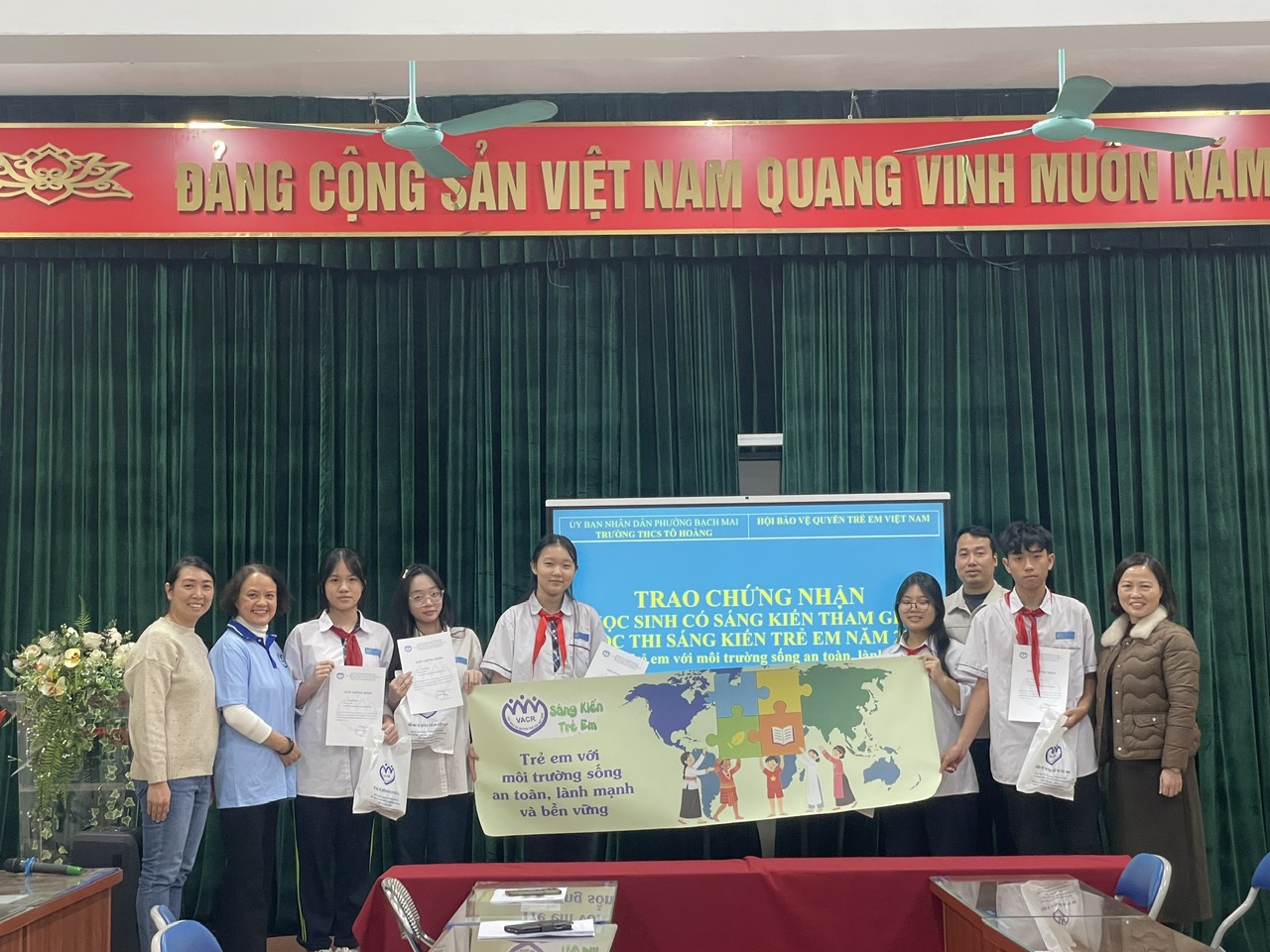 Sáng 15/12/2025, Phó chủ tịch Hội Bảo vệ quyền trẻ em Việt Nam Cao Thị Thanh Thủy đã đến trao giấy chứng nhận và quà tặng cho các nhóm trẻ em tham gia “Sáng kiến trẻ em” năm 2025 do Hội phát động và tổ chức tại trường THDL Herman Germanner và trường THCS Tô Hoàng (Hà Nội).